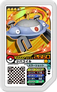 Magnezone (Japanese: ジバコイル Jibacoil) is a Grade 3 Pokémon Ga-Olé disk. It is part of the third Dash set.