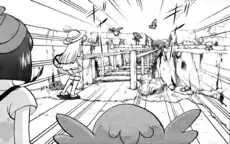 Mahalo Trail appeared in a flashback in The Eclipse. Lillie witnessed Nebby being attacked by a group of Spearow on the Plank Bridge, but lacked the confidence to go help.