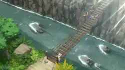 Mahalo Trail appeared in The Decision and the Tournament of Six, where Moon and Lillie traveled there after Nebby escaped from Lillie's bag and ran off. Upon arriving, they found Nebby being attacked by a group of wild Spearow. Moon stepped in to save Nebby, but Nebby caused an explosion that broke the bridge they were standing on, causing both to fall into the water. They were saved by Tapu Koko, who caught Moon and Nebby and brought them to safety.