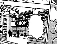 In lieu of a Poké Mart in Mahogany Town is a small shop in the middle of town which is known as Just a Souvenir Shop (Japanese: おみやげやさん souvenir shop) in Pokémon HeartGold and SoulSilver. It is a convenience store that sells supplies necessary for Pokémon training. The shop is run by a creepy old man who seems very suspicious. However, the shop is actually just a cover-up for the Team Rocket HQ, whose hideout is accessible by a stairway concealed under a gold cabinet. After Team Rocket is run out of town, the old man abandons the shop, which is later occupied by an old lady who sets up a small shop selling items that "nobody else has".