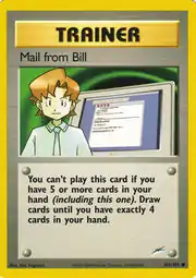 Mail from Bill (Japanese: マサキのメール Masaki's E-mail) is a Trainer card. It is part of the Neo Destiny expansion.