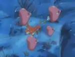 It appeared in Clamperl of Wisdom, when Ash and his friends met up with Spoink again. After Spoink lost its pink pearl in the surrounding waters, a search of the island ensued. The group eventually reunited Spoink with its pink pearl, and the Clamperl research laboratory had its rare blue pearl returned, after it was taken by Spoink in its desperation to have a pearl.