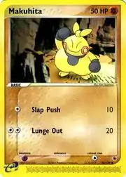 Makuhita (Japanese: マクノシタ Makunoshita) is a Fighting-type Basic Pokémon card. It is part of the EX Ruby & Sapphire expansion.