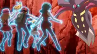 | Prior to the events of the episode, the evil Malamar recruited two others in a plan to distort the world. Despite initiating their plan, they were stopped by Ash, his friends, Team Rocket, and Officer Jenny. However, before Officer Jenny had a chance to arrest them, the two Malamar along with the recurring one escaped inside the crystals.