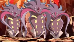 | During its scheme involving Madame X, Malamar took control of a gang of evolved wild Pokémon, including Beedrill, Noivern, Scolipede, Exploud, and Pangoro. When the group arrived and Malamar possessed them except for Ash, it opened the doors to reveal them and ordered them to seize Ash and Meowth. | ||