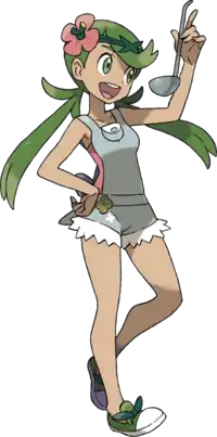 Mallow (Japanese: マオ Mao) is the Trial Captain of Akala Island's Lush Jungle. She specializes in Grass-type Pokémon.