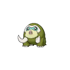 Mamoswine appears to be based on a combination of a woolly mammoth and a wild boar. The blue around its eyes also resembles ski goggles.