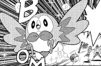 Mana tries to use him again to battle a huge wild Pangoro in Traveling Trainer Tokio, but is interrupted by Tokio. Mana uses Rowlet again to show Akira how a Z-Ring works in Mastering the Z-Move. In The Legend Revelead, it is revealed that Rowlet evolved during Akira and Mana's journey in Alola sometime before Attack on the Headquarters. Mana uses Decidueye to face a Crobat from a Team Kings Grunt, easily defeating the Pokémon Bat. During the final battle against Meja, Mana uses Decidueye against Meja's own Decidueye, after a tough battle, Mana wins after using the Z-Move on the opposing Pokémon. Decidueye is last seen in To a New Horizon alongside his Trainer. Decidueye's known moves are Razor Leaf and Spirit Shackle*. | ||