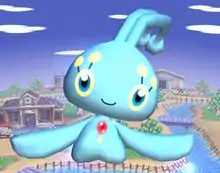 Manaphy appears as an occasional stage hazard in the Flood Chamber of the Kalos Pokémon League stage. Appearing rarely, it will use Whirlpool to create a maelstrom on the floor of the stage, sucking in any fighters standing in the water in an attempt to KO them.