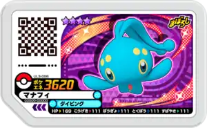Manaphy (Japanese: マナフィ Manaphy) is a Grade 4 Pokémon Ga-Olé disk. It is part of the third Ultra Legend set.