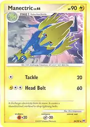 Tackle is a move in the Pokémon games that Manectric can learn. This card's Pokédex entry comes from Pokémon Diamond, Pearl, and Platinum.