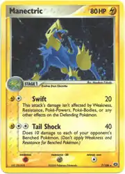 Manectric (Japanese: ライボルト Livolt) is a Lightning-type Stage 1 Pokémon card. It is part of the EX Emerald expansion.