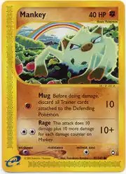 Mankey (Japanese: マンキー Mankey) is a Fighting-type Basic Pokémon card. It is part of the Aquapolis expansion.
