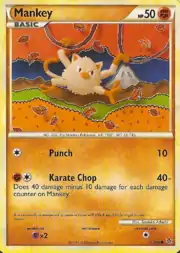 Mankey (Japanese: マンキー Mankey) is a Fighting-type Basic Pokémon card. It is part of the Unleashed expansion.
