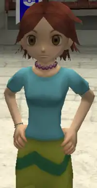 In Pokémon Colosseum, Marcia is first seen in the back of her father Duking's house in Pyrite Town. She is part of the Kids Grid, and plans to recover Duking's stolen Plusle.