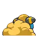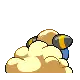 Mareep's wool, which grows continuously, stores electricity, rubbing together and building a static charge. Its volume increases when it builds up with electricity. Touching the wool when it is charged will result in a static shock. During the summer, the fleece is shed, but it grows back in a week. Air is also stored in its fur, which allows it to stay cool during summer and warm during winter. It tends to avoid battles in the wild and has a mild disposition. Mareep is most often found in grassy fields, though it can also be found in farms where its wool is used in high-quality clothing.