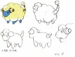 Mareep appears to be simply based on a sheep. Its yellowish wool might be inspired by the Golden Fleece in Greek and Roman mythology. It is also likely that its Electric type is a reference to how wool is able to build up static charges. Mareep and its evolved forms may also have been based on the title of the sci-fi novel Do Androids Dream of Electric Sheep?.