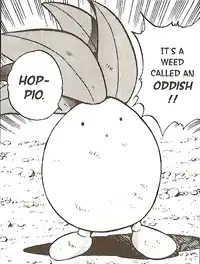 That night, a tornado ripped through Mariah's house and sent Oddish and the Hoppip flying away. Mariah thought they had all gone for good, but found Oddish nearby. Oddish was used to retrieve all the missing Hoppip around the area and successfully found two. They found that Team Rocket had taken the rest and threw them to the ground. Staryu and Heracross were about to take charge, but suddenly Oddish stepped in. Team Rocket thought of it as puny, but it was able to send Team Rocket blasting off single-handedly with its Solar Beam. In the end, it decided being an Oddish is just what it wants to be. Oddish's known moves are Solar Beam, Stun Spore, and Sleep Powder. | ||