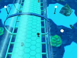 Plating corals and pyramid-like rocks can be seen in the water surrounding the tube. Lights have been placed outside the tube to provide visibility. There is a canyon halfway along the tube's route, the bottom of which cannot be seen. The Water-type Pokémon Alomomola, Basculin, Frillish, Mantine, and Wailord can be observed outside, represented with animations exclusive to this purpose. Each of these Pokémon will only appear at certain times of the day; the player can get the Wailord Watcher Medal by spotting an elusive Wailord, which are common between 3:00 PM and 5:00 PM (going by the time the player entered the Marine Tube).