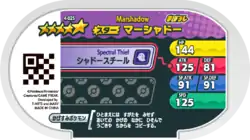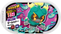 Marshadow (Japanese: マーシャドー Marshadow) is a Grade 5 Pokémon Mezastar tag. It is part of the fourth set.