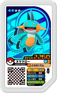 Marshtomp (Japanese: ヌマクロー Numacraw) is a Grade 2 Pokémon Ga-Olé disk. It is part of the second Grand Rush set.
