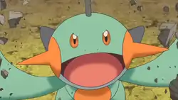 Ruby's Mudkip, nicknamed Mumu, evolved upon his arrival at Slateport City in Tripped Up by Torkoal, which Ruby was happy to record a video of. Afterwards, he was used in a battle with Magma Admin Blaise as Ruby escaped the villain using his knowledge of Pokéblocks and Natures that determine preference. After again being forced to battle with yet another Magma Admin, this time in the form of Courtney, he became a Swampert, though this time Ruby was too depressed after his fight with Sapphire to commemorate this occasion.