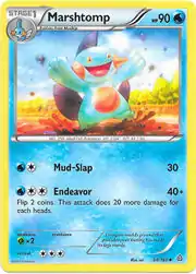 Mud-Slap and Endeavor are both moves in the Pokémon games that Marshtomp can learn. This card's Pokédex entry comes from Pokémon Y.