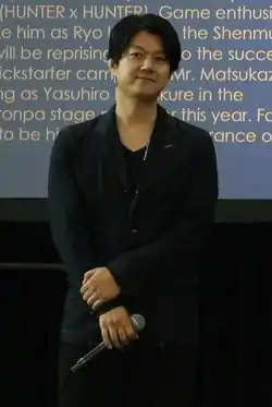 Masaya Matsukaze was born Masaya Watanabe (Japanese: 渡邉政也 Watanabe Masaya) on September 9, 1976, in Fukushima Prefecture, Japan. He was formerly affiliated with Big Apple, Radix Mobanimation Multicye Division and Varoque Works, and is currently affiliated with Aoni Production. His most notable role is MegaBlue/Shun Namiki in Denji Sentai Megaranger. He also voiced Yasuhiro Hagakure in Danganronpa, Illumi Zoldyck in Hunter x Hunter, and Kyoya Ootori in Ouran High School Host Club.