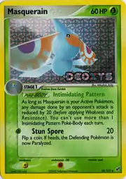 Masquerain (Japanese: アメモース Amemoth) is a Grass-type Stage 1 Pokémon card. It is part of the EX Deoxys expansion.