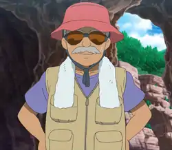When Lana and Ash came fishing, he informed them that they needed his permission to fish. He agreed to let them fish if they managed to find a Feebas, which Lana, to his astonishment, reeled in almost immediately. He then told the duo that they'd need a boat to fish, and said that they could borrow his boat if they gave him the Feebas, which they agreed to. He also stayed on the site to observe Lana's progress.