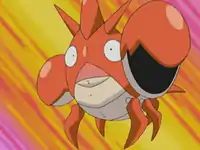 Ash gave Max his Corphish in Candid Camerupt!. He used it to battle Vivi Winstrate's Marill. During the battle, Corphish listened to none of Max's commands and went for the offense on the Aqua Mouse Pokémon, defeating it in the process. This caused Max's and Vivi's relationship to break apart, upsetting Max. However, Corphish was there to cheer up Max in the end. | ||