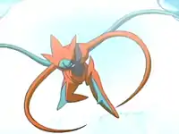 Deoxys crashed onto the planet and started causing disturbances in the area. When found, it kidnapped Max and Meowth and took them to an alternate dimension. In this time, Max befriended Deoxys and learned that it just wanted to be able to leave and get on with its life. With the help of Ash and his friends, along with Solana, this was accomplished. | ||