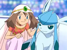 May's Glaceon (Japanese: ハルカのグレイシア Haruka's Glacia) was the second Pokémon that May obtained in the Kanto region, and her seventh overall.