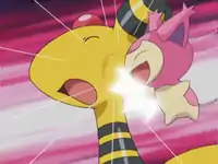 When May and her friends returned to Mauville City in Manectric Charge, Skitty battled with Watt's Ampharos. Skitty landed a few hits, but was hit by Thunder Shock when Watt revealed that Ampharos could redirect the attack. An Iron Tail almost ended the battle, but Skitty used Assist to use Torchic's Quick Attack to dodge Thunder Shock and hit Ampharos, winning the battle with Double Slap.