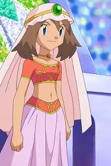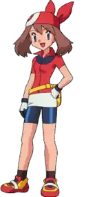 May (Japanese: ハルカ Haruka) is a ten-year-old Pokémon Coordinator from Petalburg City and a former traveling companion of Ash. She is the daughter of Norman and Caroline, and her starter Pokémon was a Torchic given to her by Professor Birch.