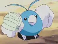May intended to return Swablu to its flock, but when the group arrived at the lakeside nesting spot, they couldn't find the flock. May offered Swablu a place on her team, seeing as they had become good friends. However, just then, its flock reappeared, and Swablu reluctantly left with them. Swablu's only known move is Sing. | ||