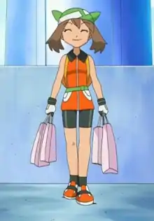 - May is the only main character, other than Ash, to wear gloves as part of her character design.