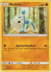 Meditite (Japanese: アサナン Asanan) is a Fighting-type Basic Pokémon card. It is part of the Unified Minds expansion.