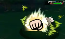 | Zangoose's fist becomes surrounded in a gray orb of energy. It then punches the opponent. | |||