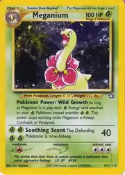 Meganium (Japanese: メガニウム Meganium) is a Grass-type Stage 2 Pokémon card. It is part of the Neo Genesis expansion.