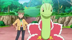 In Beg, Burrow and Steal, Elisa used a Meganium to stop a Donphan from chasing Hal and prevent Team Rocket from stealing the Vibrava.