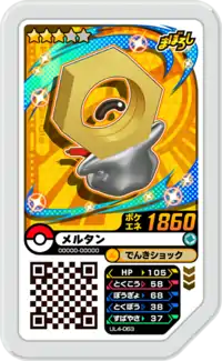 Meltan (Japanese: メルタン Meltan) is a Grade 3 Pokémon Ga-Olé disk. It is part of the fourth Ultra Legend set.