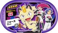 Meowth (Japanese: ニャース Nyarth) is a Grade 4 Pokémon Mezastar tag. It is part of the first Super Tag set.