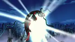 Meta Groudon's instinctual goal was to absorb the life energy of the earth and the living things around it. It could absorb energy from the ground and nearby plants merely by standing in their vicinity. When faced with moving targets, Meta Groudon could morph its claws and the spikes on its body into gelatinous tentacles of a significant length. Anything engulfed by these tentacles would be stored in blood cell-like bubbles inside Meta Groudon's body, presumably until their energy was completely drained. Meta Groudon displayed exceptional resilience in combat, easily shrugging off all attacks used against it. Only Jirachi's Doom Desire was able to harm it, and this was only after Jirachi had absorbed enough energy from it to cause its body to begin melting into a viscous sludge. At this point, Meta Groudon could no longer maintain its form and attempted to destroy the last of its enemies by suffocating them under its melting body, only to be destroyed shortly thereafter.