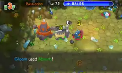 | Bastiodon jumps in front of an attack and lets itself get hit with it while standing its ground. As the attack hits it, it raises its head slightly, releasing a powerful pulse of energy from its face outward. The pulse is the opponent's attack, and it is sent back with double the power. | |||
