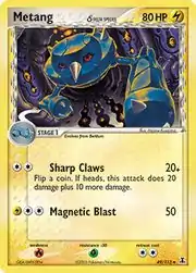 Metang δ (Japanese: メタング δ Metang δ) is a Lightning-type Stage 1 Pokémon card. It is part of the EX Delta Species expansion.