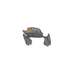 Metang is formed when two Beldum fuse together. A magnetic nervous system joins the brains of these two Pokémon. This linkage allows Metang to generate a strong, psychokinetic power that is doubled. However, this does not increase its intellect. This Pokémon's high intelligence and strong magnetic field are other sources of powerful psychic energy. In addition to generating psychic power, its magnetism allows Metang to hover in midair. It is able to rotate its arms backwards in order to travel at speeds over 60 mph (100 km/h) in search of prey. When Metang finds its prey, it uses its psychic power to stop it from escaping. Then it firmly grabs onto the prey with its claws, never letting go. Metang's claws are able to rip through steel. This Pokémon lives on rough terrains and harsh mountains. It pursues Nosepass, loving its magnetic minerals.