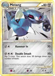Metang (Japanese: メタング Metang) is a Metal-type Stage 1 Pokémon card. It is part of the Undaunted expansion.