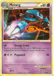 Metang (Japanese: メタング Metang) is a Psychic-type Stage 1 Pokémon card. It is part of the Unleashed expansion.