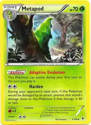 Harden is a move in the Pokémon games that Metapod can learn. This card's Pokédex entry comes from Pokémon X.